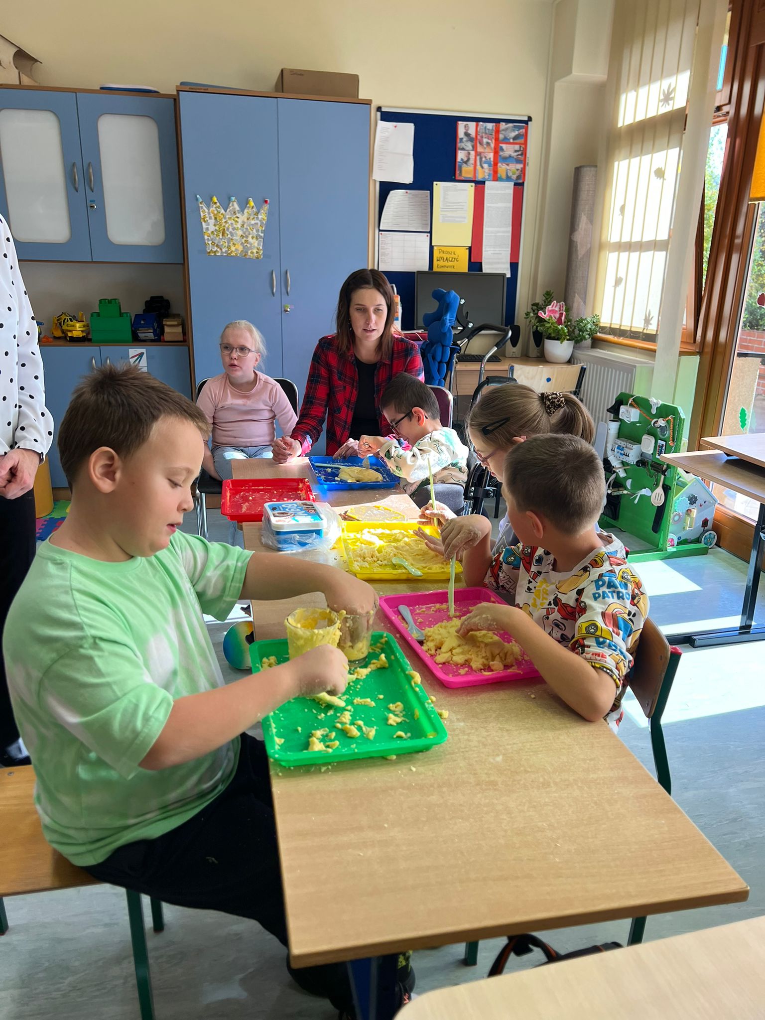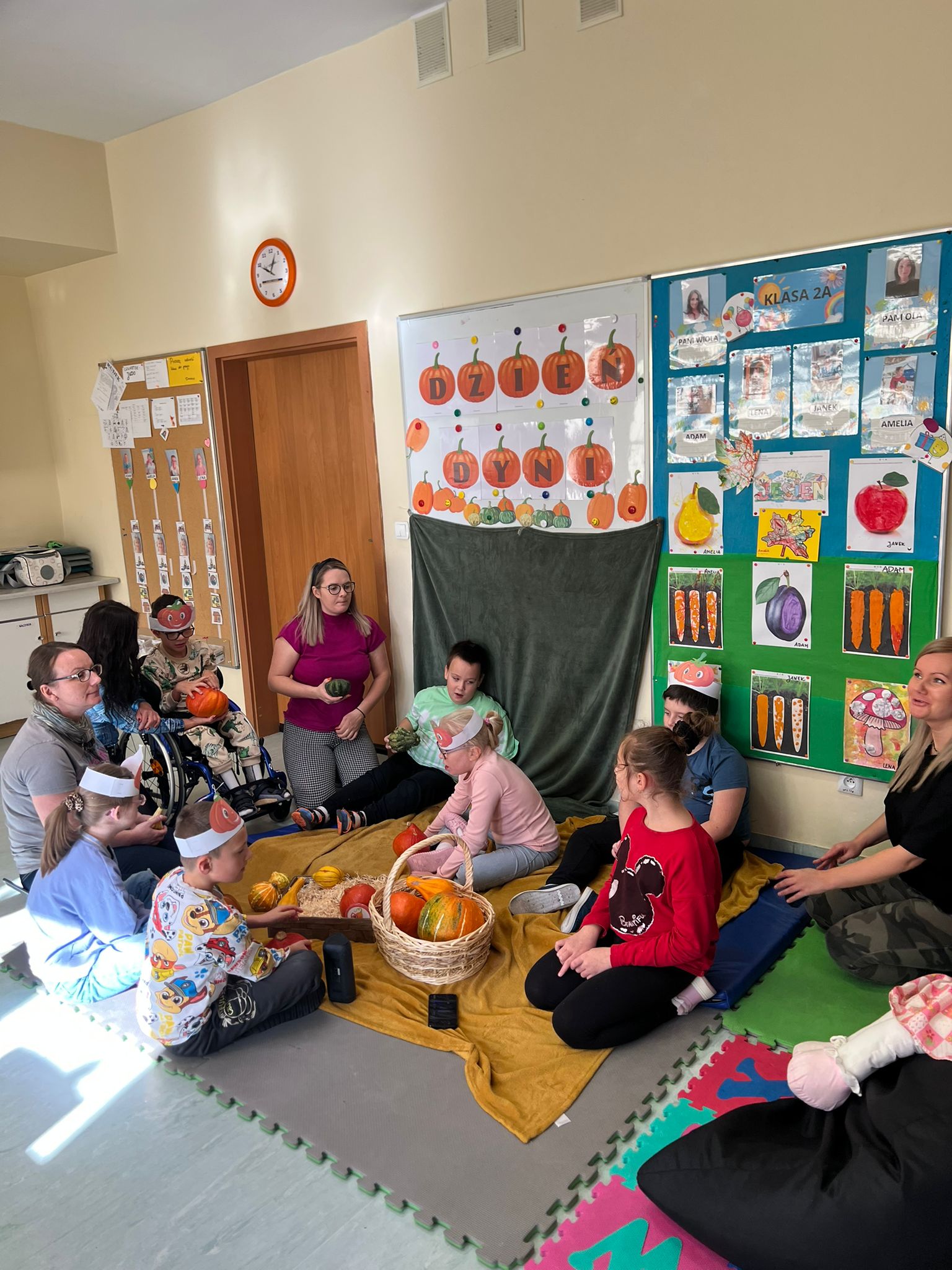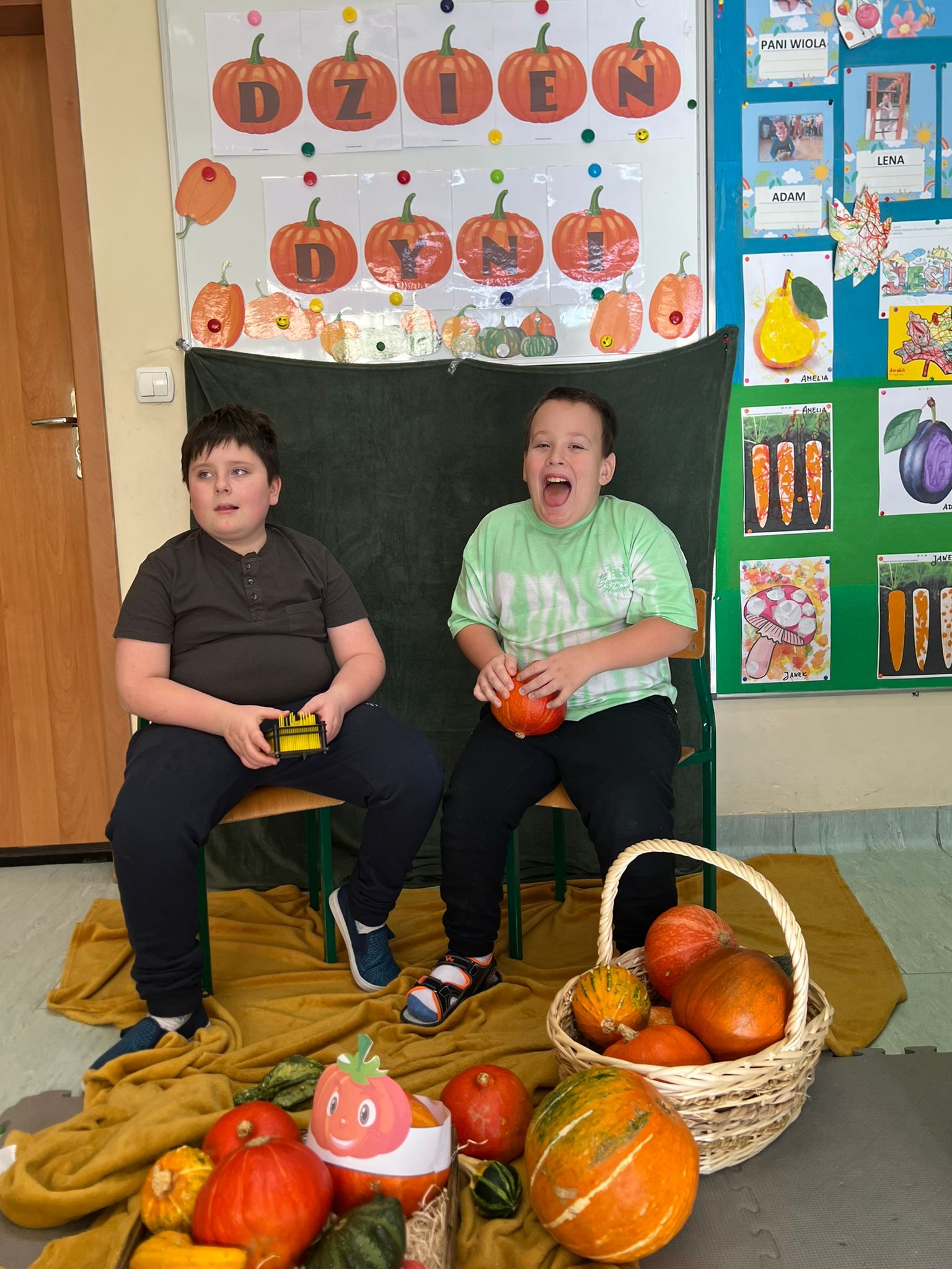 29 października 2025 r. uczniowie klas 1b, 1c oraz 2a świętowali Dzień Dyni – pełen kolorów, zabawy i jesiennej radości. Dzieci brały udział w różnorodnych aktywnościach: muzyczno–ruchowych, tanecznych oraz matematycznych. Z ciekawością oglądały dynie o różnych kształtach, rozmiarach i barwach, a także mogły ich dotknąć i porównać. Najwięcej emocji dostarczyła gra w „Dyniowe kręgle”, która wzbudziła mnóstwo śmiechu. Dużym zainteresowaniem cieszyła się także zabawa z dynioliną – specjalną masą plastyczną, której wykonanie dzieci poznały krok po kroku. Z przygotowanej masy powstały kreatywne prace plastyczno–techniczne, pełne pomysłowości i jesiennych barw. Na zakończenie tego wyjątkowego wydarzenia wszyscy uczniowie wzięli udział w pamiątkowej sesji zdjęciowej z dynią oraz mieli możliwość zdjęcia w specjalnej dyniowej foto ramce.