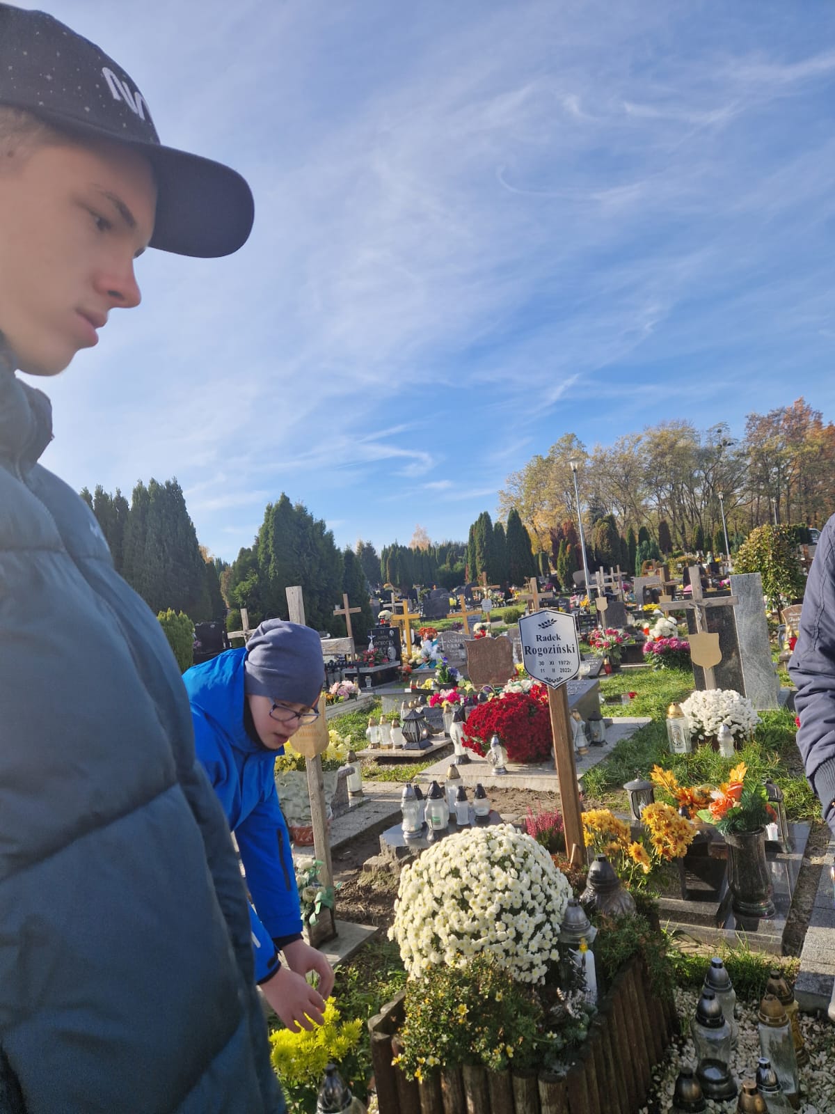 W dniu 05 listopada 2025 roku uczniowie klas 6 d i 7 c wybrali się na wycieczkę na cmentarz komunalny. Odwiedzili groby zmarłych nauczycieli naszej szkoły oraz żołnierzy Armii Krajowej, zapalając znicze i oddając im hołd. Była to chwila zadumy i refleksji nad przeszłością, a także ważna lekcja historii i patriotyzmu, związana ze zbliżającym się Świętem Niepodległości. To wydarzenie stało się wyjątkowym wyrazem pamięci i wdzięczności.