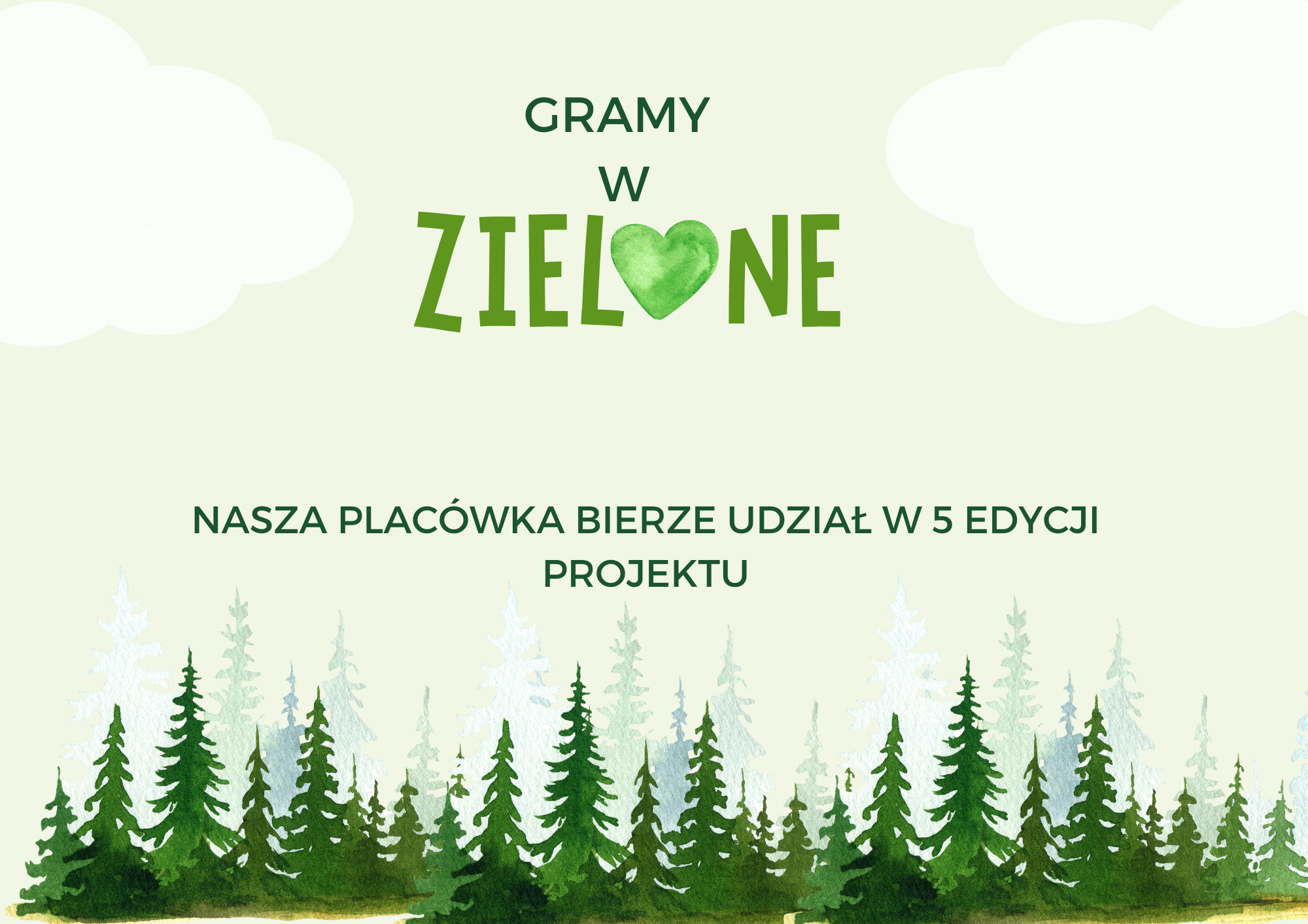 W roku szkolnym 2025/2026 nasza szkoła przystąpiła do ogólnopolskiego projektu edukacyjno-ekologicznego Gramy w zielone, którego autorką jest Karina Perkowska. Projekt realizowany jest od września 2025 roku do czerwca 2026 roku, a jego głównym celem jest kształtowanie u uczniów świadomości ekologicznej oraz pozytywnych postaw wobec środowiska naturalnego.