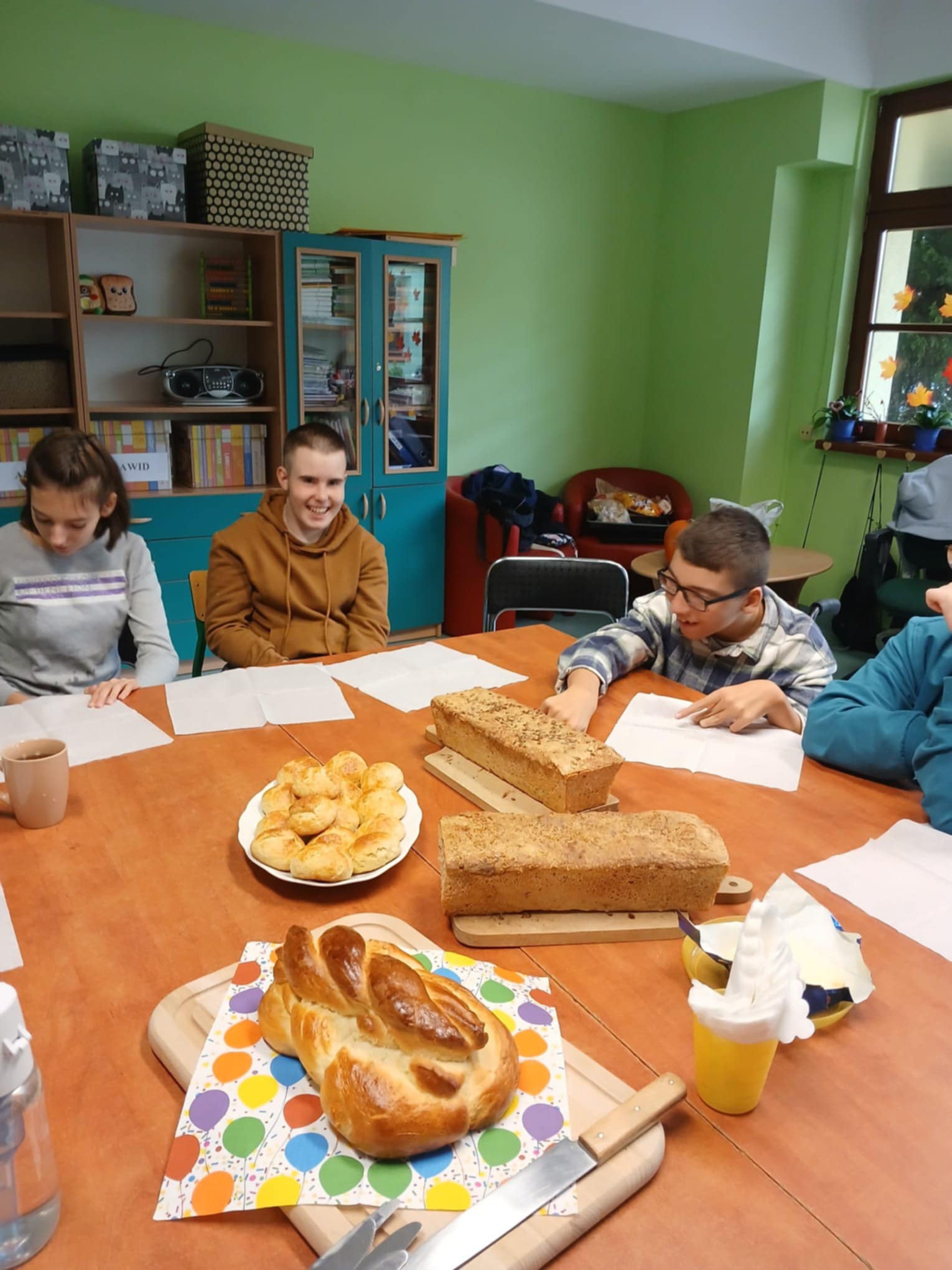22 października klasy: 4 h, 8 c i 8 d spotkały się na warsztatach poświęconych wypiekowi pieczywa. Pracę praktyczną poprzedził film edukacyjny "Od ziarenka do bochenka", który w przystępny sposób pokazał proces powstawania pieczywa. Każda z klas przygotowała inny rodzaj pieczywa. Klasa 4 h upiekła chałkę, klasa 8 c chleb wieloziarnisty, klasa 8 d bułeczki drożdżowe. Wypieki udały się znakomicie, a wspólna degustacja sprawiła nam wszystkim wiele radości.