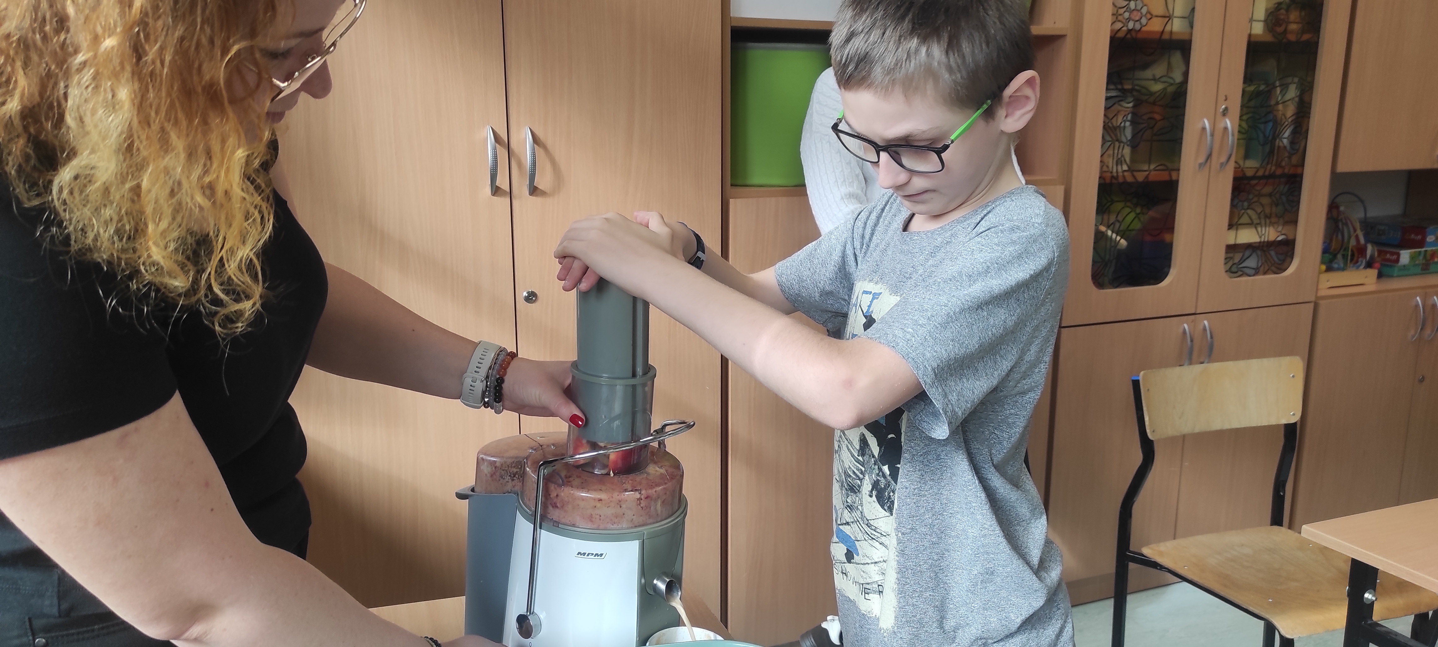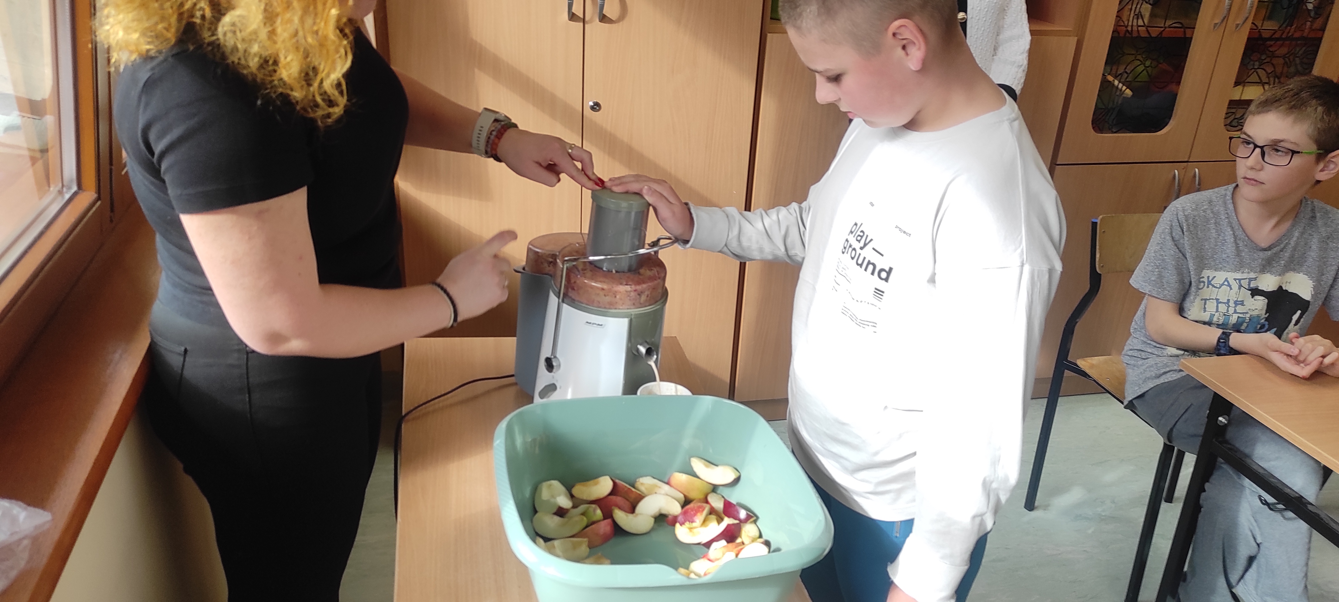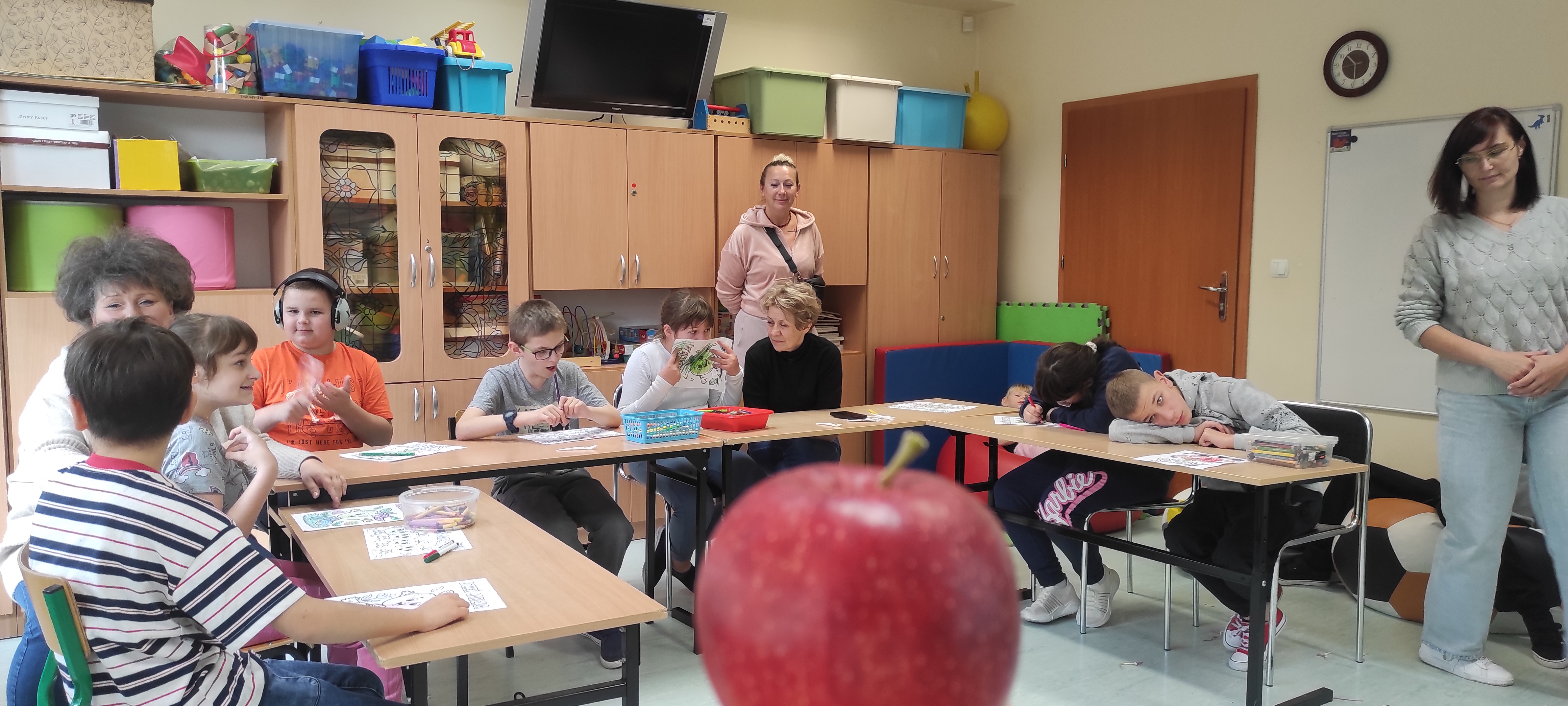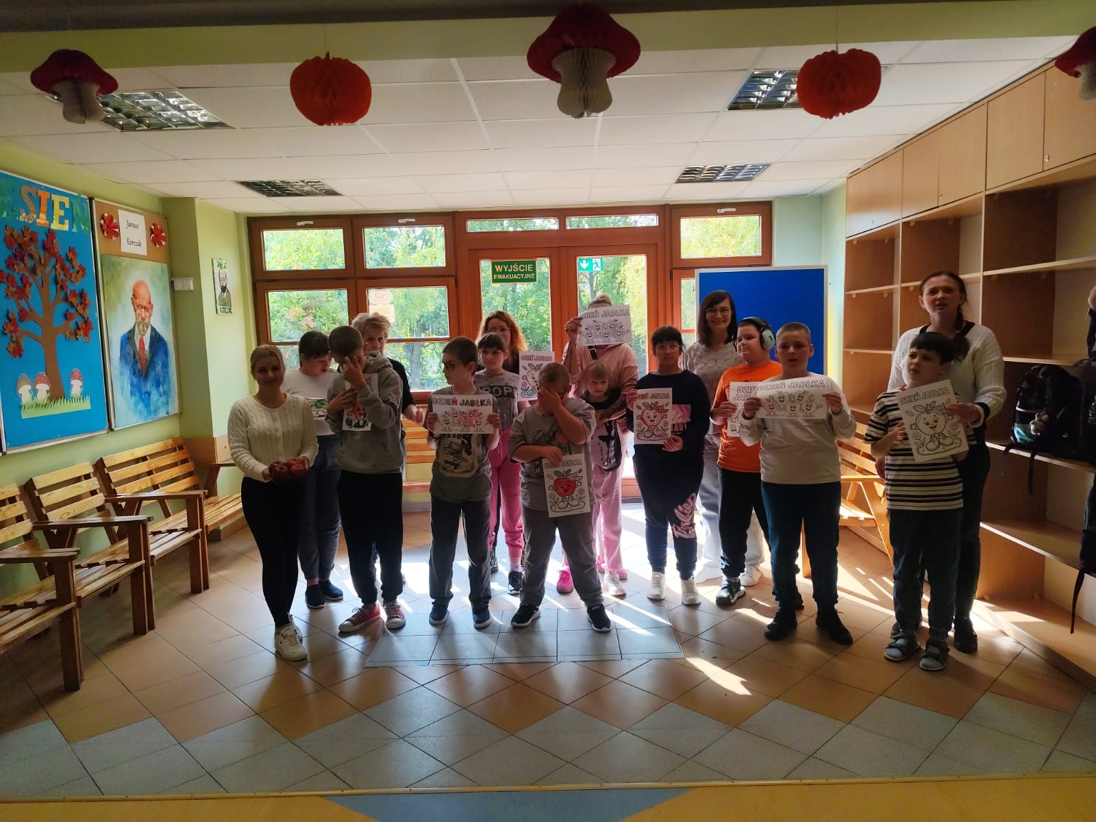 Uczniowie klas 2b, 3a, 3b, 3c i 3d wspólnie świętowali Dzień Jabłka! To był dzień pełen wrażeń, smaków i dobrej zabawy. Podczas zajęć poznawaliśmy ten popularny owoc wszystkimi zmysłami – oglądaliśmy różne odmiany jabłek, wąchaliśmy ich zapach, smakowaliśmy, dotykaliśmy i rozmawialiśmy o ich wartościach zdrowotnych. Rozwiązywaliśmy tematyczne karty pracy, oglądaliśmy film edukacyjny o drodze jabłka "Z drzewa na talerz", a także delektowaliśmy się pysznym musem jabłkowym.Na zakończenie dnia samodzielnie przygotowaliśmy świeżo wyciskany sok jabłkowy – zdrowy, smaczny i pełen witamin! To była doskonała okazja do nauki poprzez zabawę i do wspólnego celebrowania darów natury.