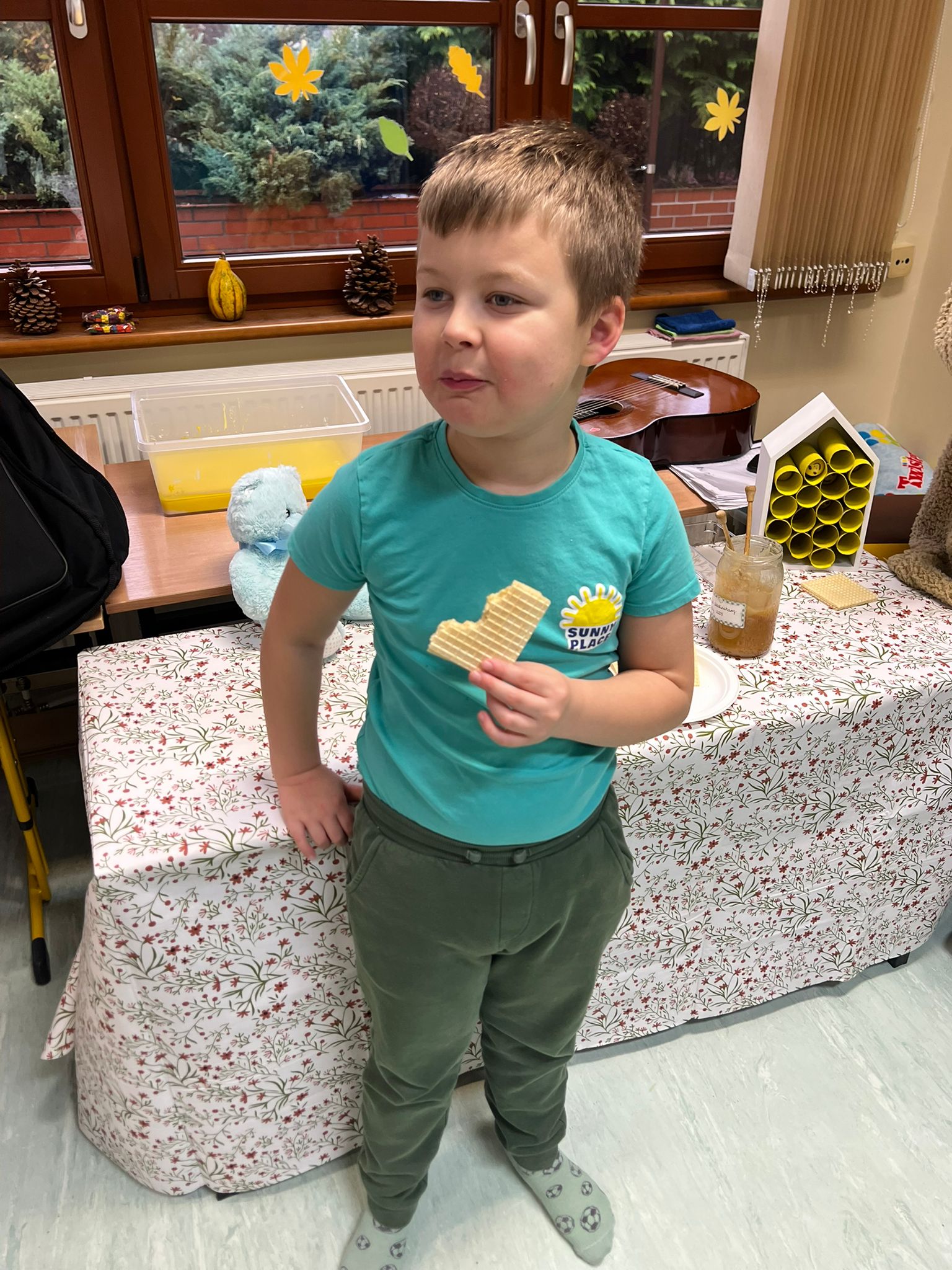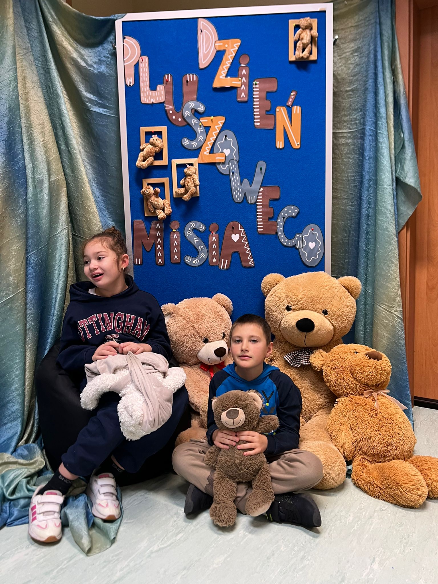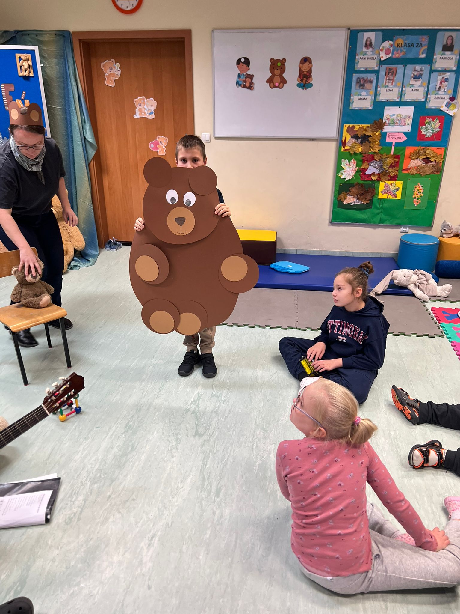 Uczniowie klas 1a, 1b, 1c i 2a wzięli udział w warsztatach sensorycznych, z okazji Dnia Pluszowego Misia, obchodzonego 25 listopada. Spotkanie zaczęliśmy „misiowymi” piosenkami. Następnie dzieci dowiedziały się gdzie mieszkają pszczoły oraz w jaki sposób powstaje miód. Znalazła się również chwila na skosztowanie przysmaku każdego małego misia - pysznego, zdrowego, złocistego miodu. Uczniowie, łącząc się we wspólnej zabawie, wykonali również "misiową" pracę plastyczną. Na zakończenie dnia zobaczyli fragment bajki o najsłynniejszym misiu na świecie, mowa tu oczywiście o Kubusiu Puchatku.