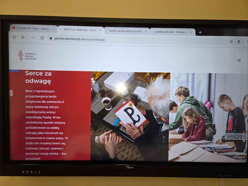 Wraz z uczniami klas: 4a, 5a, 6a oraz 8a przygotowaliśmy kartki świąteczne dla weteranów II wojny światowej, którym zawdzięczamy wolną i niepodległą Polskę. W ten symboliczny sposób złożymy podziękowanie za odwagę, jaką odznaczyli się bohaterowie w czasie ostatniej wojny światowej. W tym roku wspólnymi siłami udało się nam przygotować 17 kartek."Serce za Odwagę" - Fundacja Pamięci Narodów. Warsztaty odbyły się na zajęciach unauczycieli: Teresy Podolak, Izabeli Zimy, Moniki Skołd oraz Krzysztofa Śmigla.