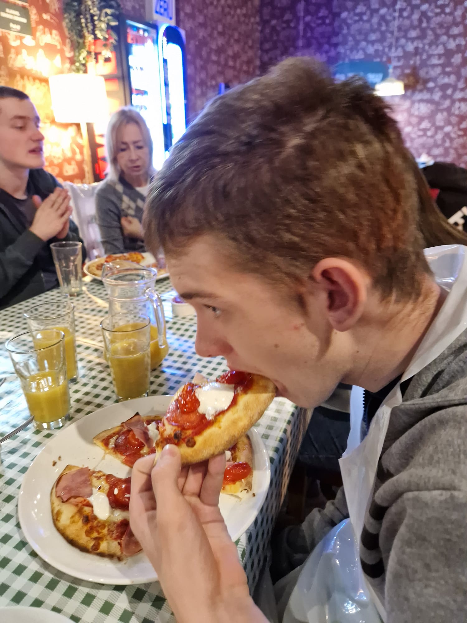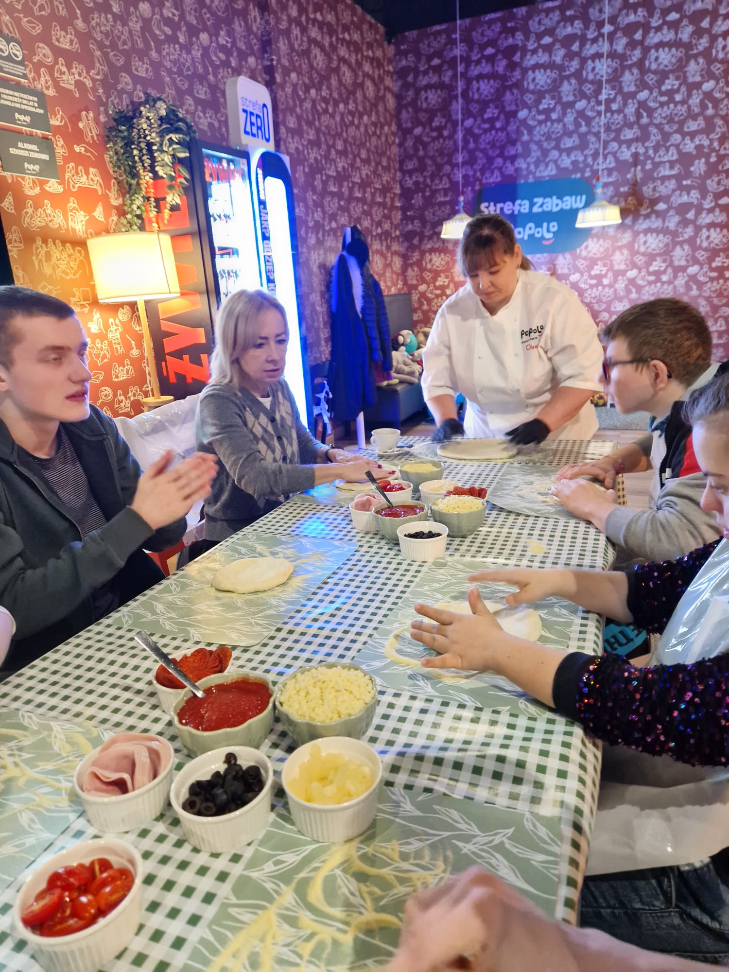 W dniu 26 listopada 2025 r. uczniowie klas 6d oraz 7c wzięli udział w warsztatach kulinarnych poświęconych przygotowaniu pizzy. Zajęcia miały na celu rozwijanie umiejętności praktycznych, kreatywności oraz poznanie tajników przygotowania potraw. Na początku uczniowie zapoznali się z niezbędnymi składnikami wykorzystywanymi do przygotowania pizzy. Poznali etapy procesu powstawania ciasta oraz znaczenie poszczególnych produktów. Następnie uczestnicy samodzielnie zagniatali ciasto, formowali je z kulki w placek, a później nakładali składniki według własnych preferencji. Do wyboru dostępne były: sos pomidorowy, salami, szynka, ser, ananas, oliwki oraz pomidory. Uczniowie wykazali się dużą pomysłowością i zaangażowaniem podczas tworzenia swoich kompozycji smakowych. Po upieczeniu pizze zostały wspólnie skonsumowane, co stanowiło radosne zakończenie zajęć.