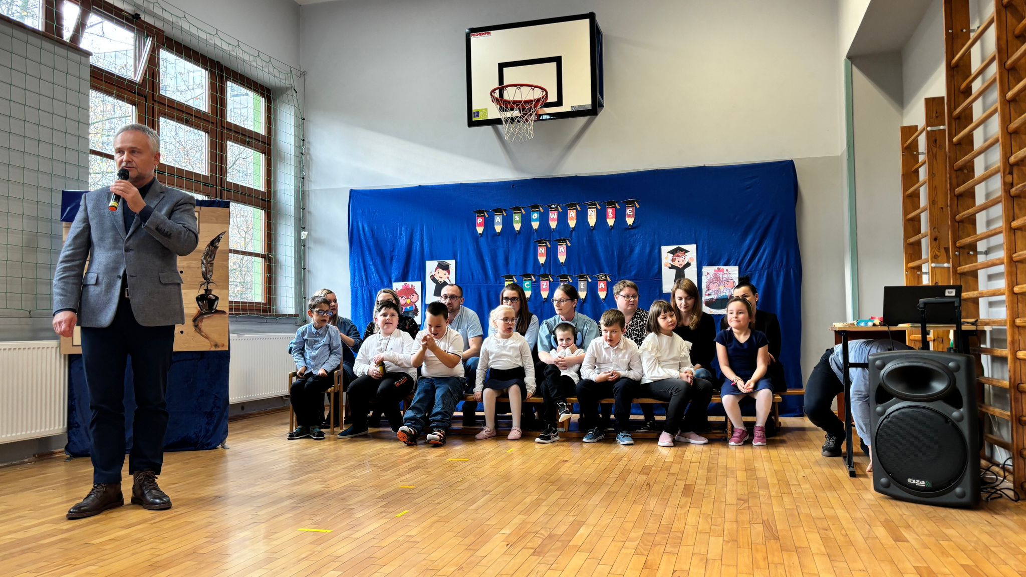 27 listopada 2025 roku w naszej szkole odbyła się uroczystość pasowania uczniów klas pierwszych – wyjątkowy moment, na który najmłodsi czekali z ogromną niecierpliwością. Wydarzenie dostarczyło wszystkim wielu wrażeń i emocji. Pierwszoklasiści zaprezentowali piękną część artystyczną, w której nie zabrakło piosenek, gry na instrumentach oraz tańca. Ich występ wzbudził zachwyt zgromadzonej publiczności, a na twarzach rodziców, którzy przybyli na uroczystość, widać było dumę i wzruszenie. Po oficjalnym pasowaniu oraz artystycznych prezentacjach na dzieci i gości czekał słodki poczęstunek, który był miłym zakończeniem tego ważnego wydarzenia.
