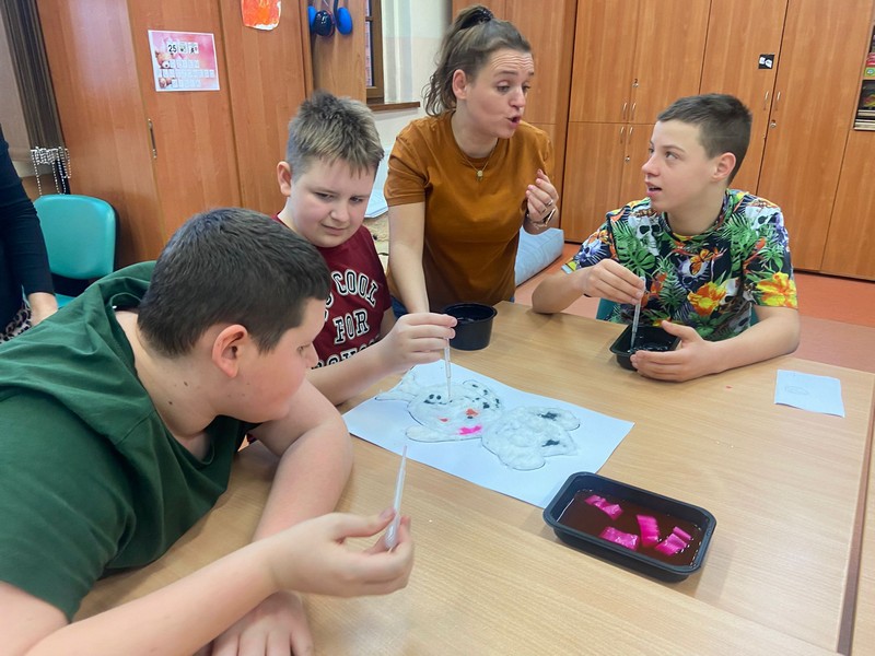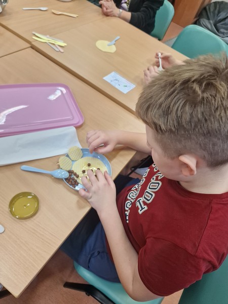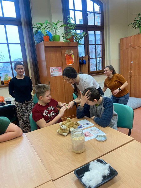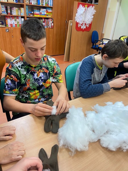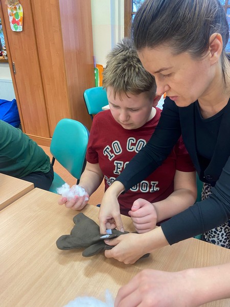 W dniu 25 listopada w naszej szkole odbyły się warsztaty świetlicowe z okazji Dnia Pluszowego Misia. W zajęciach uczestniczyli uczniowie klas 4–8. Spotkanie rozpoczęło się krótką prezentacją na temat historii pluszowego misia oraz przeglądem znanych bohaterów bajek, takich jak: Kubuś Puchatek, Miś Uszatek czy Paddington. Następnie uczniowie pracowali przy stanowiskach warsztatowych: kolorowali misie pipetą, tworząc barwne kompozycje, przygotowywali słodkie „misiowe” wafle z miodem i czekoladowymi kuleczkami. Na zakończenie każdy uczestnik otrzymał uszytego pluszowego misia do samodzielnego wypełnienia. Warsztaty przyniosły uczniom wiele radości i były doskonałą okazją do wspólnej zabawy, kreatywności i rozwijania sprawności manualnej.