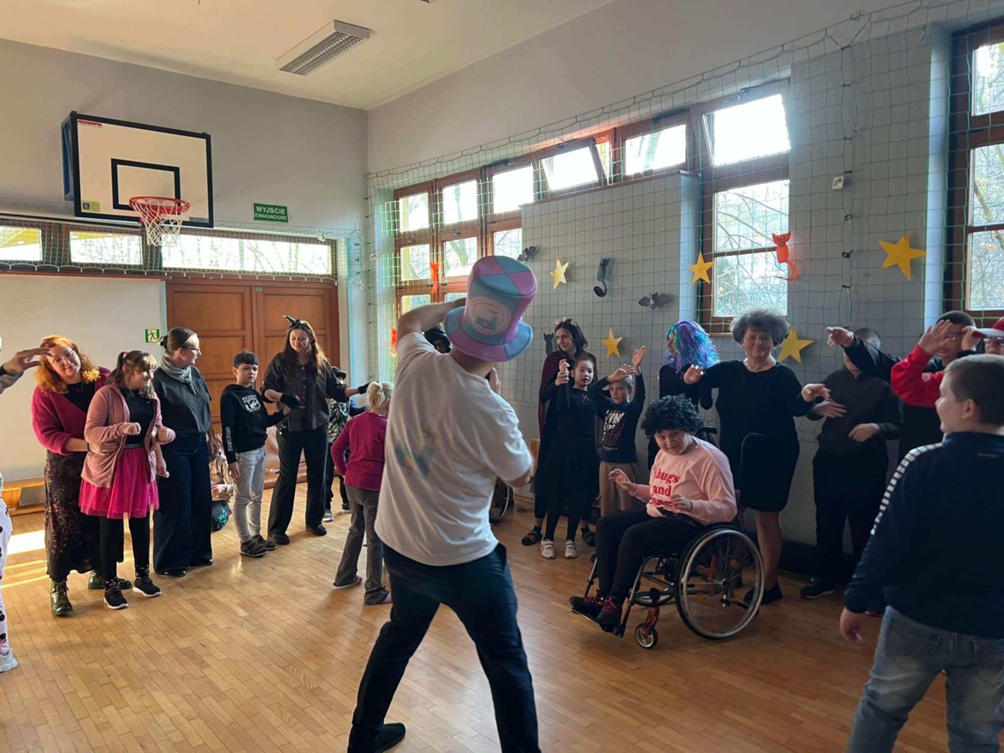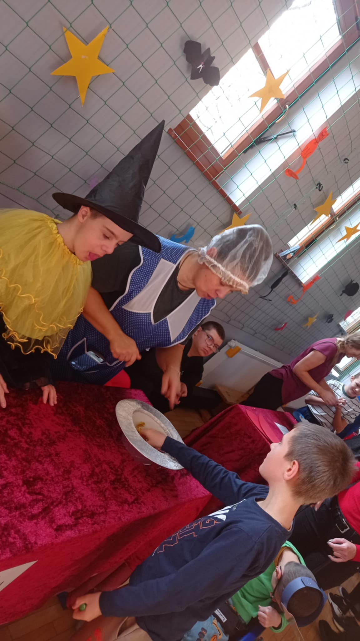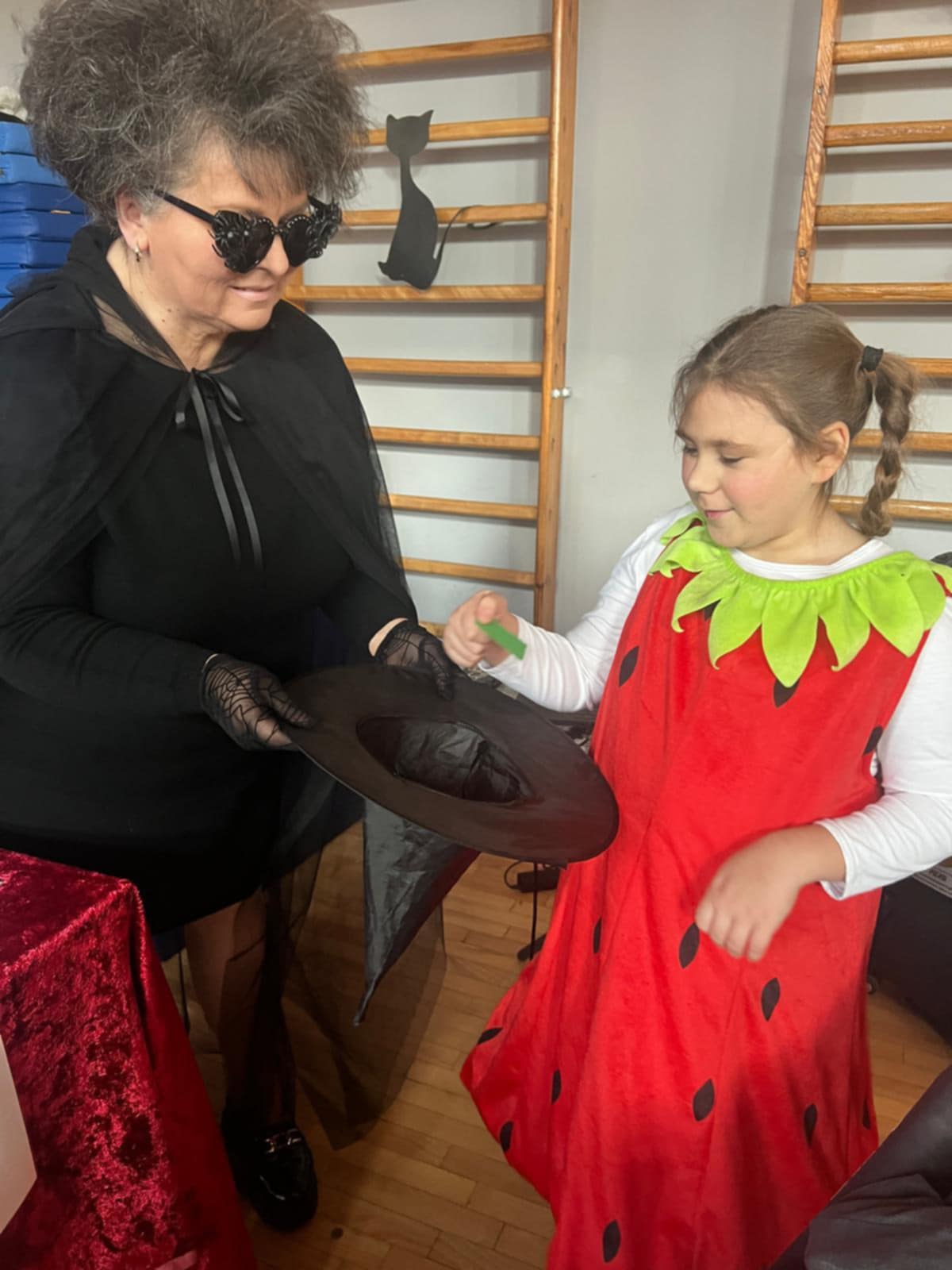 28 listopada uczniowie szkoły podstawowej uczestniczyli w zabawie andrzejkowej. Troska o zapewnienie sobie powodzenia i szczęścia towarzyszyła wszystkim ludziom przez wieki i stąd liczne były wróżby, zabiegi magiczne i zaklęcia. Z czasem magię zastąpiono barwnymi widowiskami, zabawą. Jako zabawy przetrwały do naszych czasów. Nasza zabawa rozpoczęła się w sali udekorowanej symbolami wiedzy tajemnej i magicznej: kotami, nietoperzami, wzorami czarownic. Zabawę prowadziły gospodynie: dwie wróżki. Uczestnicy andrzejek wystąpili w specjalnie na tę okazję przygotowanych przebraniach. Przebrania te prezentowali podczas pokazu na czerwonym dywanie. Wszyscy uczestnicy wróżyli sobie w różnorodnych kącikach z wróżbami. Przerwę między wróżbami wypełniała muzyka i wesoła zabawa. Dodatkową atrakcją zabawy było przybycie animatora z Fabryki Dziecięcych Uśmiechów, który prowadził ciekawe zabawy ruchowe przy muzyce wcielając się w postaci dinozaura i Myszki Miki.