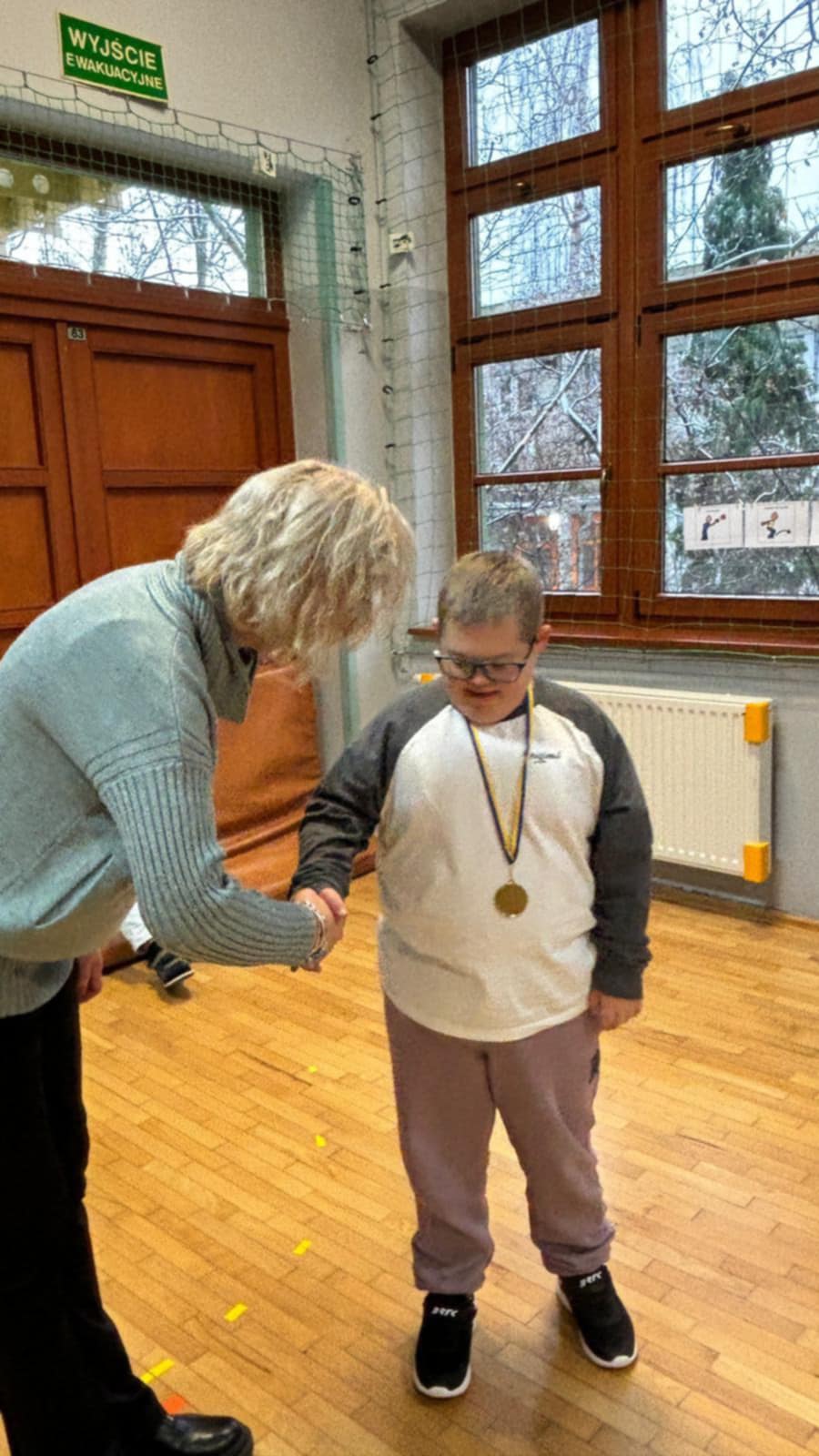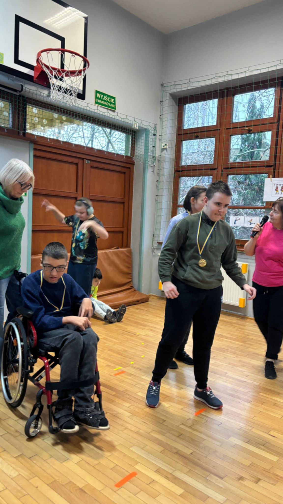 24 listopada w naszej szkole odbyły się Zawody MATP (Motor Activity Training Program) – wyjątkowa forma rywalizacji sportowej skierowana do uczniów z niepełnosprawnościami, wymagających dostosowanej aktywności ruchowej. MATP to program, którego celem jest umożliwienie każdemu uczniowi udziału w zawodach sportowych, niezależnie od stopnia sprawności. Podczas zawodów uczniowie brali udział m.in. w : ćwiczeniach równoważnych, zadaniach z wykorzystaniem piłek i przyborów, aktywnościach rozwijających koordynację i motorykę dużą oraz torach przeszkód przygotowanych specjalnie dla nich. Uczniowie wykazali się ogromnym zaangażowaniem, wytrwałością i entuzjazmem. Z pełnym skupieniem podchodzili do zadań, a każdy wykonany element budził ich dumę i motywował do dalszej pracy. Każdy uczestnik otrzymał Kartę Zawodnika, na której zaznaczaliśmy wykonane konkurencje oraz zdobyte punkty. Atmosfera wydarzenia była pełna entuzjazmu, wzajemnego wsparcia i pozytywnych emocji. Zawody MATP kolejny raz pokazały, że sport jest dla każdego, a najważniejsze są radość, ruch i wspólne przeżywanie sukcesów.